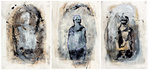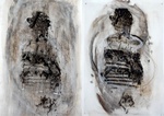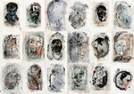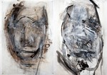 tekeningen uitgevoerd op papier en doorzichtig materiaal in houtskool - inkt - verf